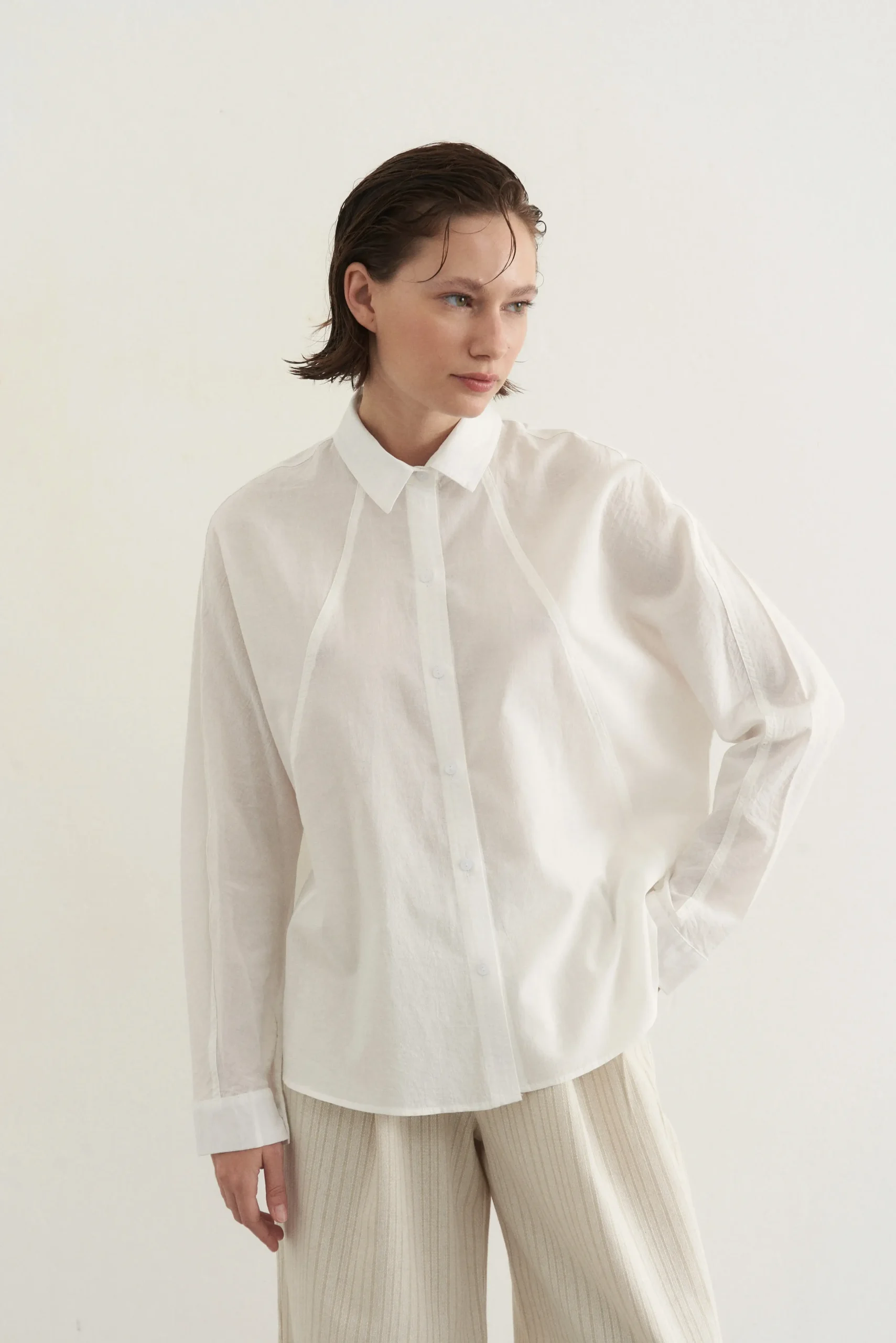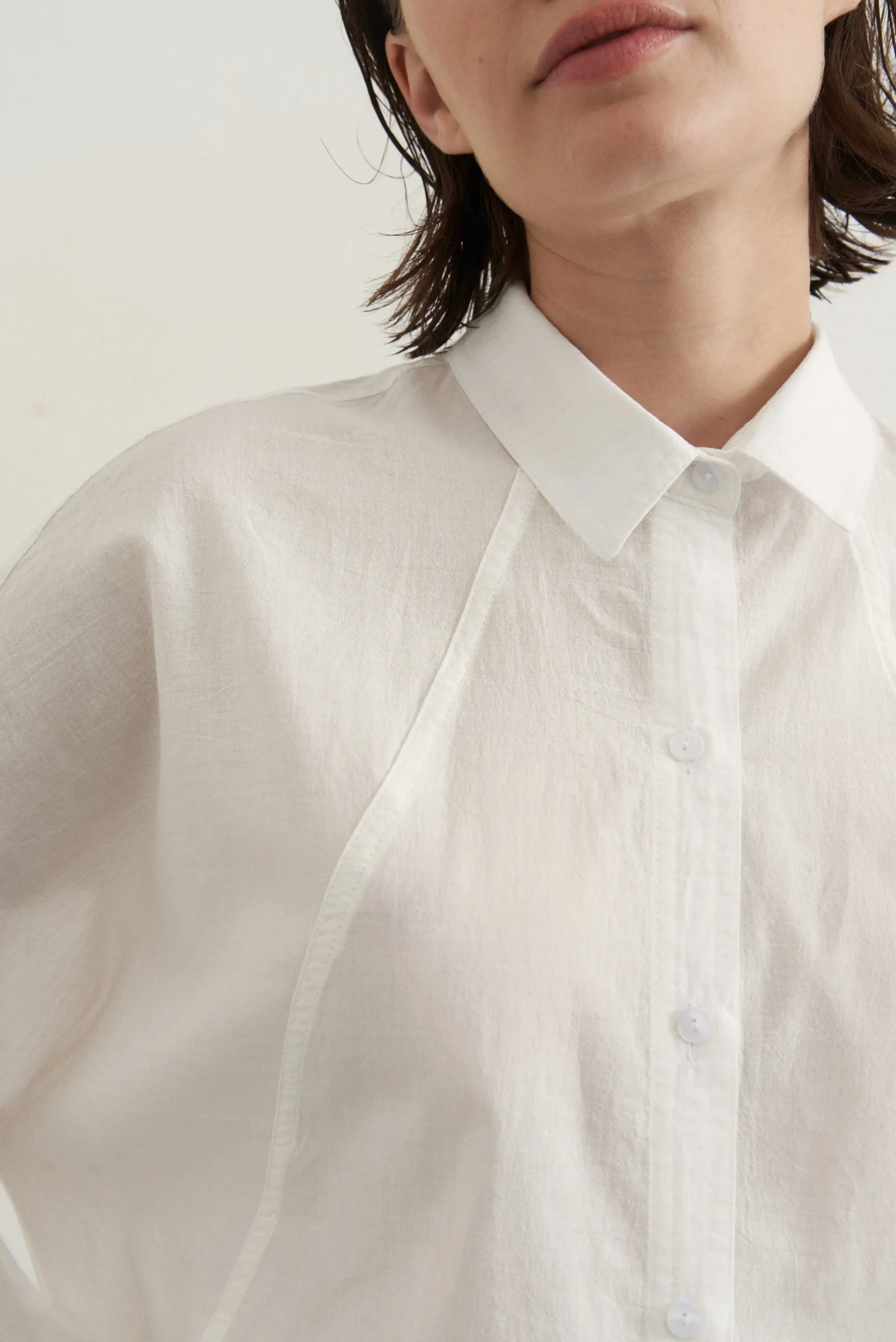 Camisa de voile prelavado. Tiene recortes delanteros.