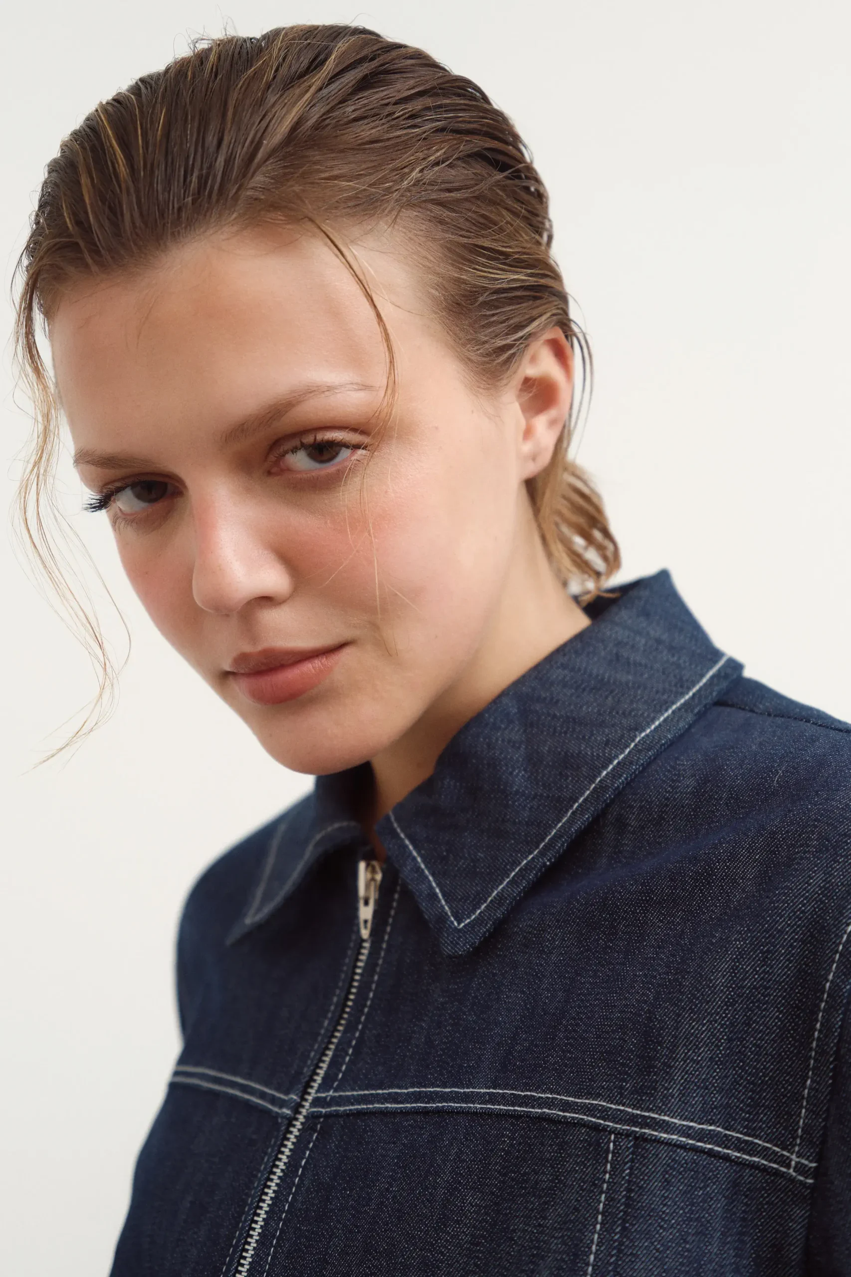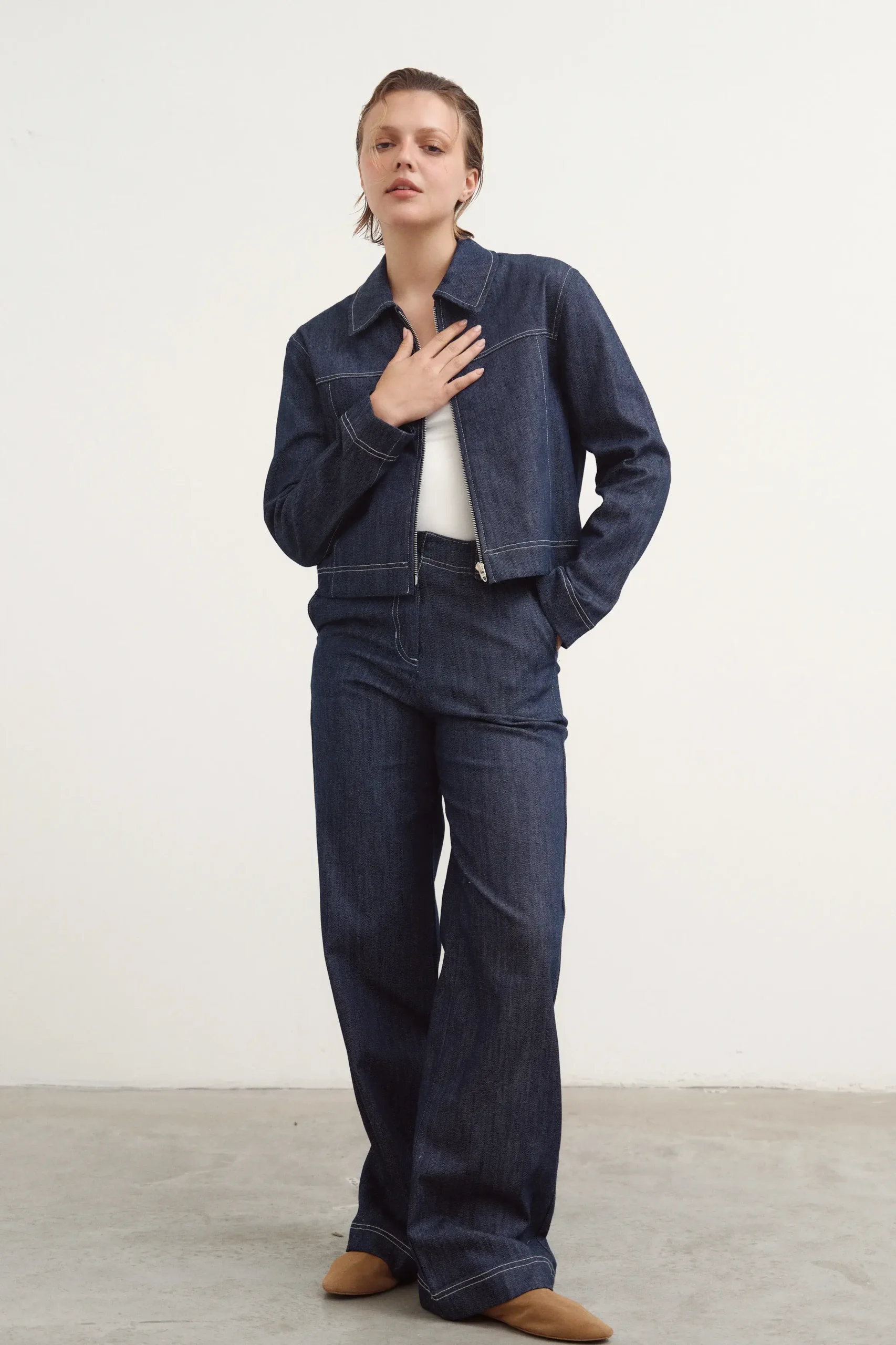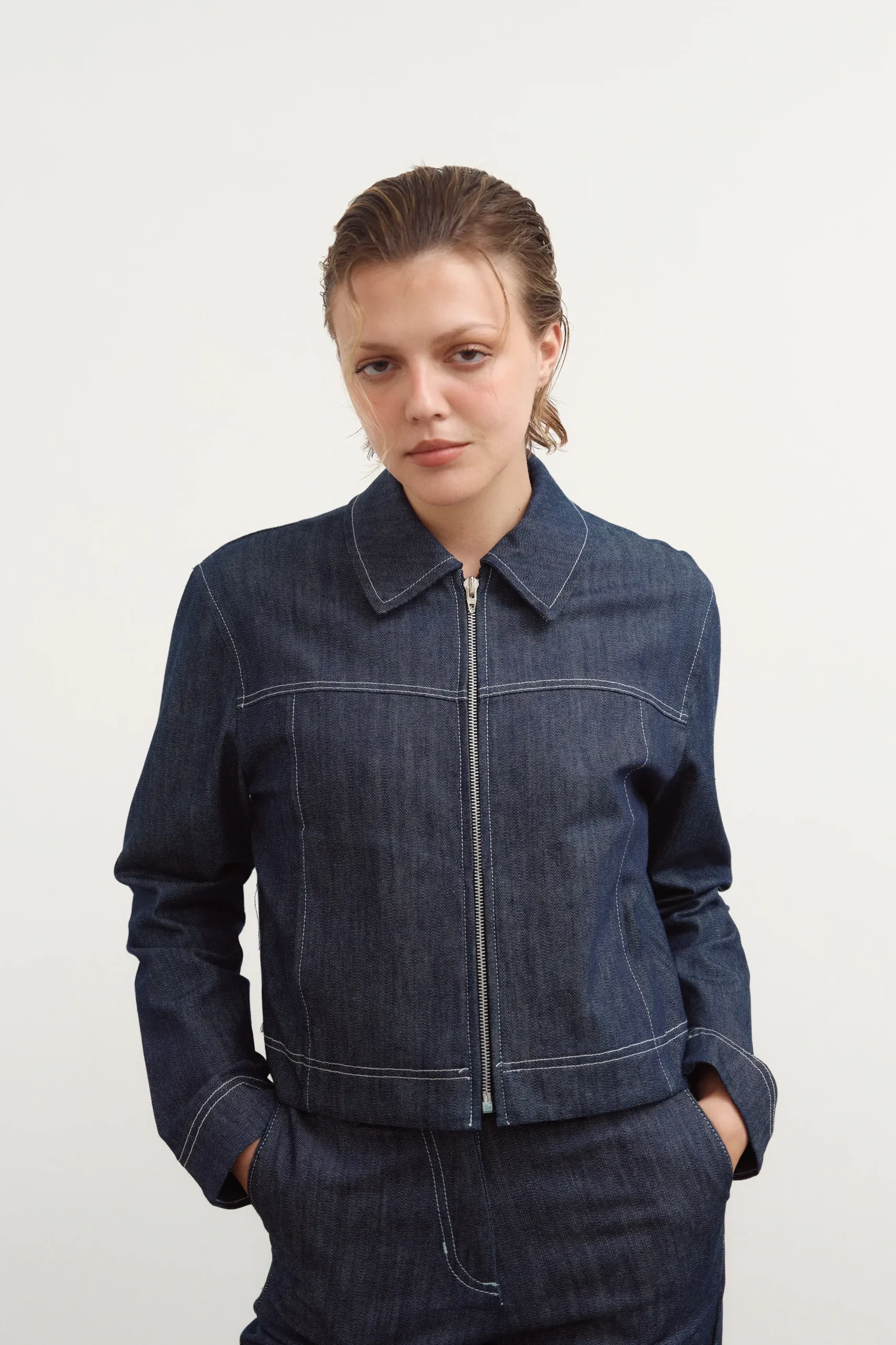 Campera corta de denim. Conjunto con Pantalón Cozumel.