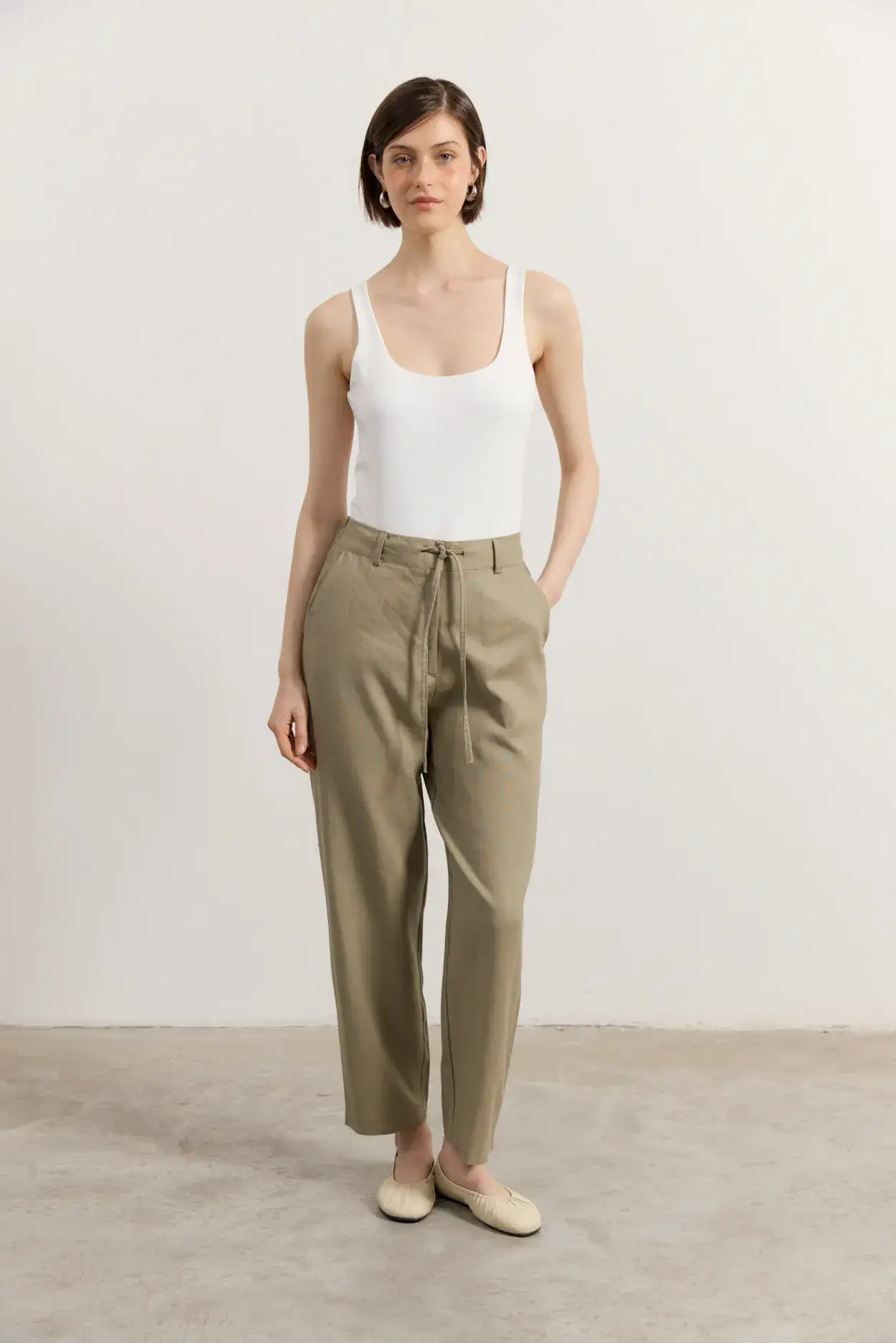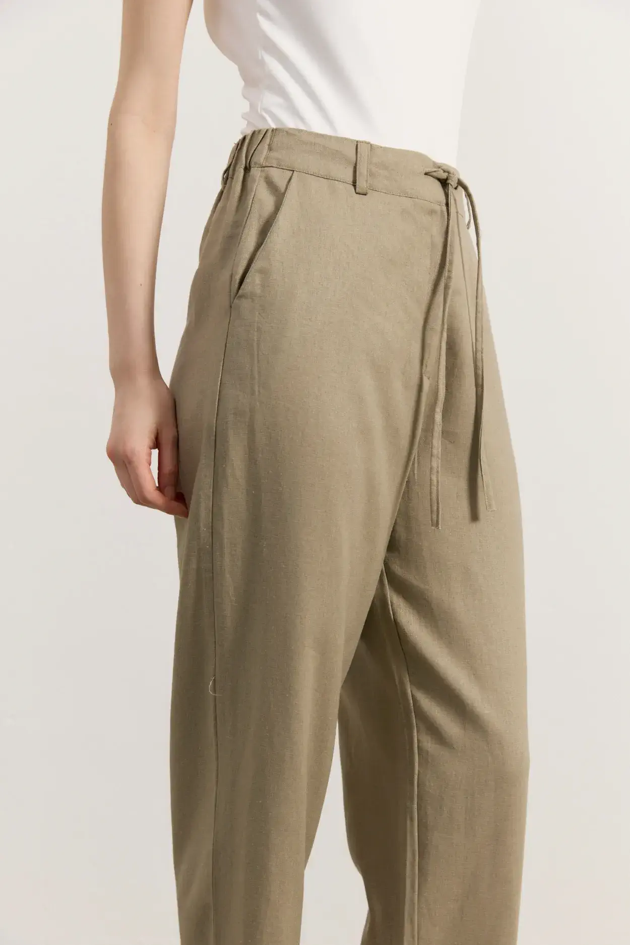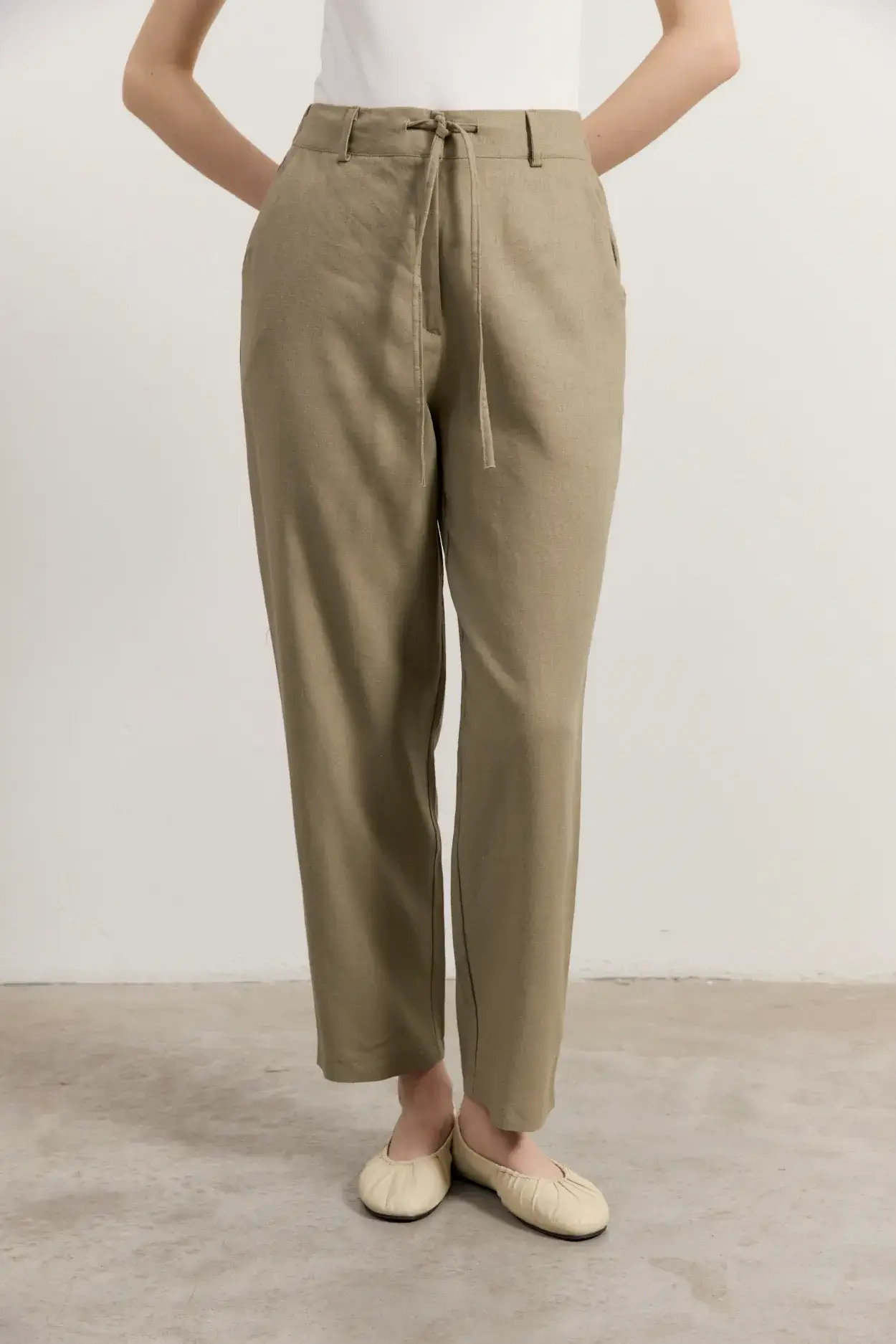 Pantalón clásico de lino. Tiene lacito en la cintura.